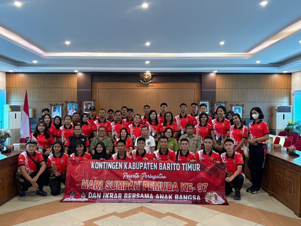 Tamiang Layang, 24 Oktober 2025 – Pemerintah Kabupaten Barito Timur menggelar kegiatan Pelepasan Kontingen Hari Sumpah Pemuda dan Ikrar Bersama Anak Bangsa di Ruang Rapat Kantor Bupati Barito Timur, Jumat (24/10/2025). Kegiatan tersebut dihadiri oleh Asisten III Sekretariat Daerah, Edius Uhing, SE., MM, Sekretaris Dinas Kebudayaan, Pariwisata, Kepemudaan, dan Olahraga Eva Silviany Adiaty, ST.,MT., Kepala Badan Kesatuan Bangsa dan Politik Anda Kriselina, S.Si., Apt., M.Kes., serta panitia pendamping, tim kesehatan, Purna Paskibraka, dan seluruh anggota kontingen. Dalam sambutannya, Anda Kriselina menyampaikan bahwa tanggal 28 Oktober merupakan momen sakral yang mengingatkan…