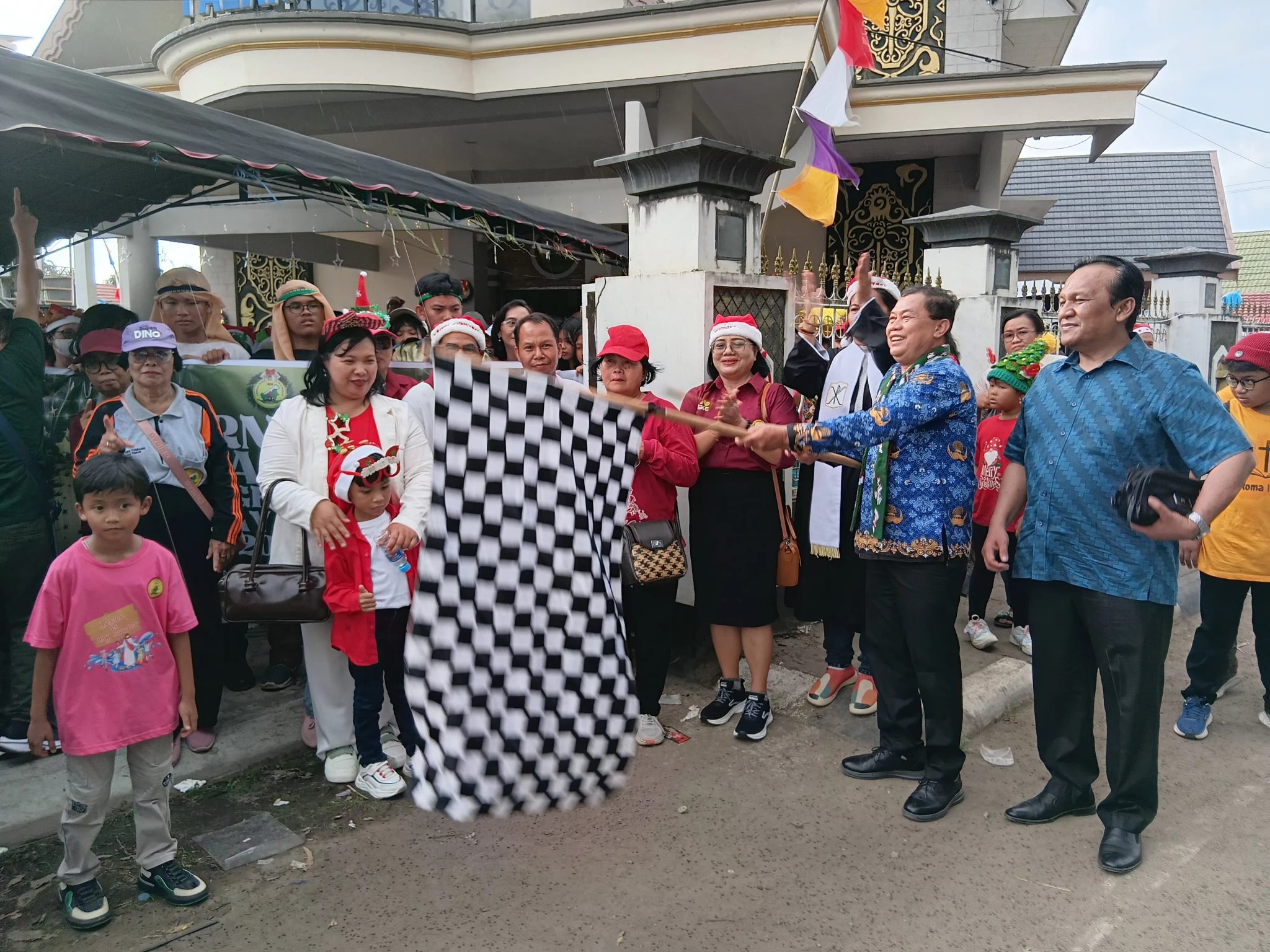 TAMIANG LAYANG — Bupati Bartim M.Yami melalui Asisten III Setda Kabupaten Barito Timur Edius Uhing resmi melepas Karnaval Natal 2025 pada Senin, 1 Desember 2025.Dalam sambutan yang dibacakan Edius Uhing, Bupati Barito Timur menyampaikan apresiasi sebesar-besarnya kepada panitia pelaksana, tokoh agama, tokoh masyarakat, organisasi gereja, jemaat Resort GKE Tamiang Layang, serta seluruh peserta yang telah berperan dalam mempersiapkan kegiatan tersebut.