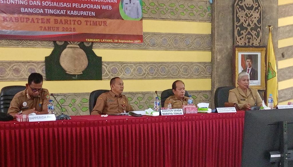 TAMIANG LAYANG – Rapat Koordinasi Tim Pencegahan dan Percepatan Penurunan Stunting (TP3S) Kabupaten Barito Timur, dan Sosialisasi Pelaporan Web Bangda digelar untuk memperkuat kolaborasi lintas sector, serta meningkatkan kedisiplinan pelaporan program. Kegiatan ini berlangsung di Aula Bappelitbangda Barito Timur, Senin (29/9/2025). Laporan Ketua TP3S Barito Timur Adi Mula Nakalelu, yang diwakili oleh Kepala Bappelitbangda Ir. Franz Sila Utama, M.AP, menyebutkan bahwa rakor ini juga menjadi sarana penyusunan rencana kerja di masing-masing bidang TP3S. “Rapat koordinasi ini diharapkan dapat mengoptimalkan peran tim dalam menyisir seluruh sasaran dan melakukan intervensi yang tepat,…