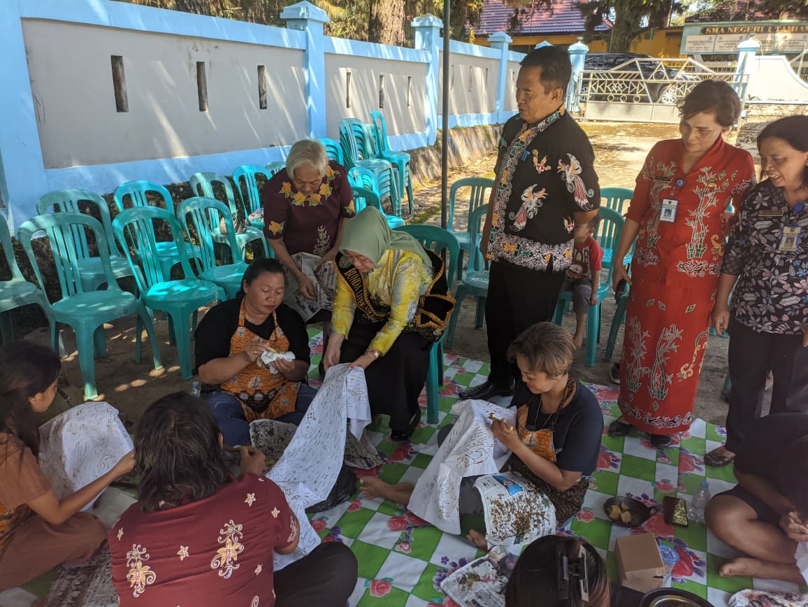 TAMIANG LAYANG – Bunda Literasi Kabupaten Barito Timur, Ny. Misnawaty M. Yamin, mengajak masyarakat, khususnya para ibu rumah tangga, untuk menjadikan literasi sebagai pintu pembuka peluang ekonomi kreatif. Pesan itu disampaikan saat dirinya berkunjung ke Perpustakaan Daerah Kabupaten Barito Timur, Kamis (2/10/2025). Didampingi Plt. Kepala Dinas Perpustakaan dan Arsip, Ari Panan P. Lelo, beserta jajaran, Bunda Literasi menyemangati para peserta pelatihan keterampilan membatik. Ia berharap keterampilan tersebut tidak berhenti setelah tiga hari pelatihan, melainkan dilanjutkan secara mandiri hingga menghasilkan karya yang bisa dipakai sendiri maupun dijual untuk menambah penghasilan keluarga. “Kalau ibu-ibu tekun, membatik bisa menjadi peluang usaha. Selain menambah penghasilan, juga bisa melestarikan budaya,” ucap Misnawaty. Kunjungan itu juga bertepatan dengan jadwal rutin kursus komputer gratis dan kursus bahasa Inggris gratis yang digelar di perpustakaan. Pada kesempatan tersebut, Bunda Literasi memberikan souvenir kepada anak-anak peserta kursus sebagai bentuk dukungan agar mereka semakin giat belajar. Ia mengapresiasi berbagai program yang sudah berjalan di Perpustakaan Daerah, mulai dari kursus, pelatihan keterampilan, hingga pembiasaan membaca bagi anak-anak. Menurutnya, perpustakaan harus terus menjadi ruang belajar bersama yang menyenangkan sekaligus bermanfaat. Hadir pula dalam kegiatan itu Plt. Sekretaris Dinas, para kabid, staf, masyarakat, serta orang tua peserta kursus yang turut menyambut positif kunjungan Bunda Literasi.(cak).