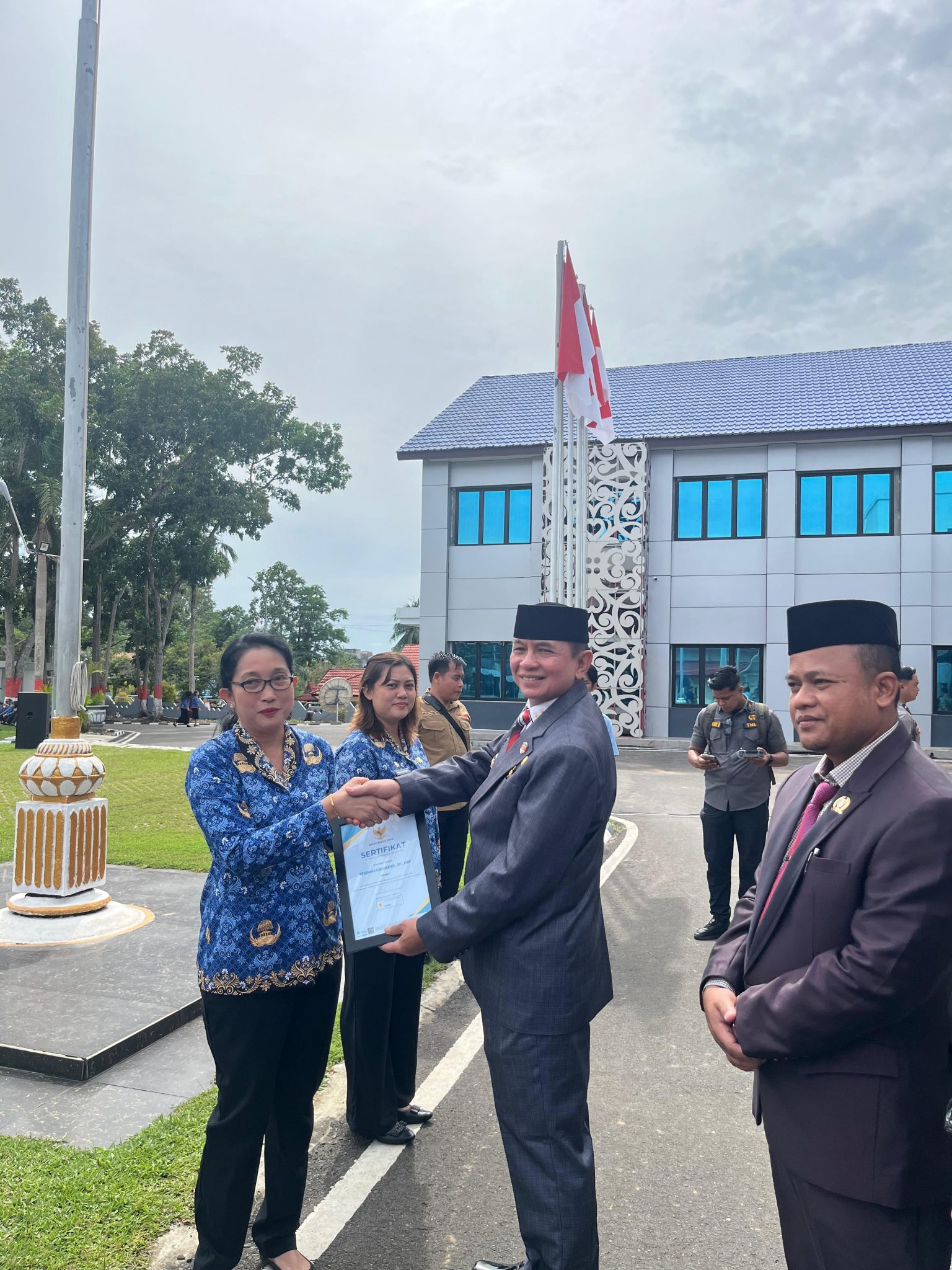 Penghargaan diserahkan secara simbolis oleh Bupati Barito Timur, disaksikan unsur Forkopimda, Pj Sekda, seluruh Kepala OPD, serta peserta upacara. Kegiatan ini sekaligus menjadi bagian dari aksi perubahan Pelatihan Kepemimpinan Administrator Angkatan II PPSDM Regional Yogyakarta yang dipimpin oleh Dina Kamiati, SP., MAP, Kepala Bidang PKPKA BKPSDM Barito Timur.