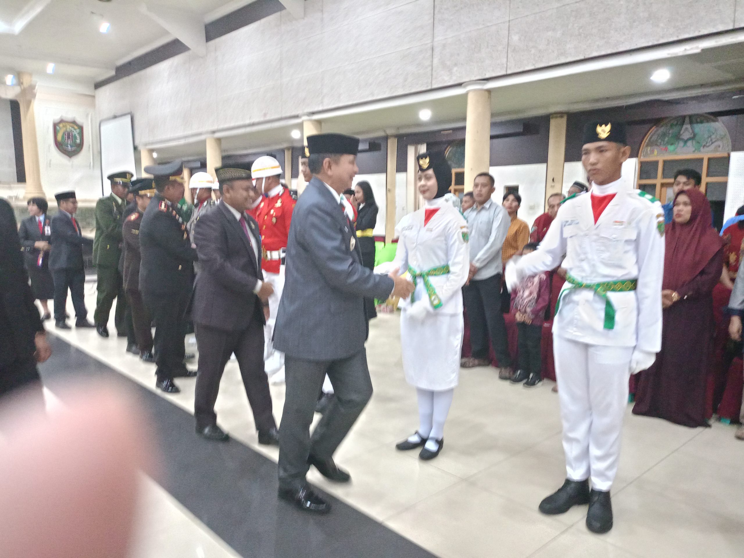 TAMIANG LAYANGBupati Barito Timur, Muhammad Yamin, mengukuhkan puluhan anggota Pasukan Pengibar Bendera Pusaka (Paskibraka), Jum’at (15/8/2025) malam. Kegiatan yang dilaksanakan di Gedung Pertemuan Umum (GPU) Mantawara Tamiang Layang itu dihadiri Pabung 1012/Buntok, Kajari Bartim, Kapolres Bartim, Ketua PN Tamiang Layang, Kepala Rutan Tamiang Layang, Ketua KPU Bartim, Pj Sekda Bartim, Asisten Setda, kepala OPD, orang tua, dan tamu undangan lainnya. Pada upacara pengukuhan itu, anggota Paskibraka Barito Timur terlebih dulu mengucapkan Ikrar Pemuda Indonesia oleh perwakilannya.