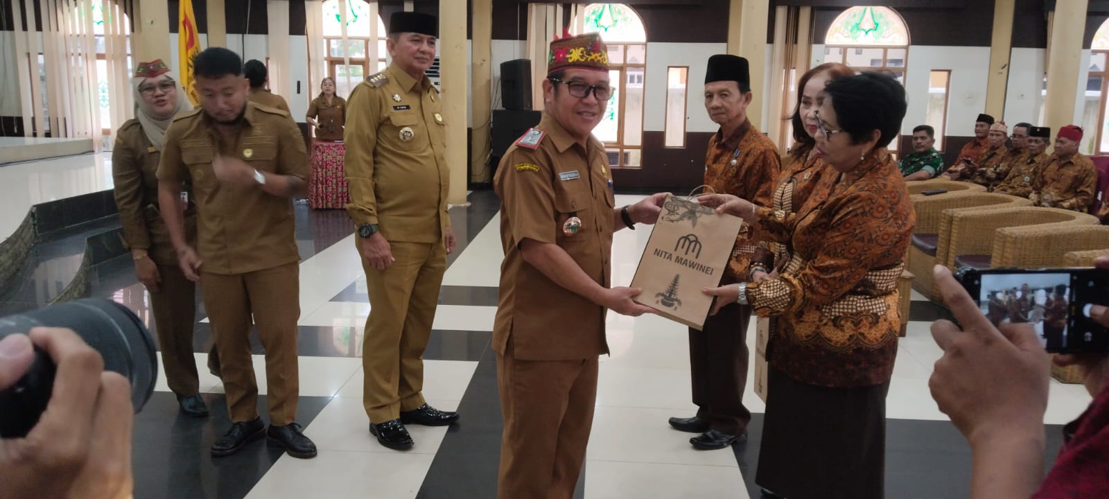 Melalui kesempatan itu Bupati Barito Timur dan Wakil Bupati dan didampingi Sekda Bartim menyerahkan cinderamata kepada Wakil Ketua PWRI Provinsi Kalteng Bidang Organisasi Antar Lembaga Matias H.Assan. Cinderamata juga diberikan kepada Duta Informasi PWRI Provinsi Kalteng. (har).