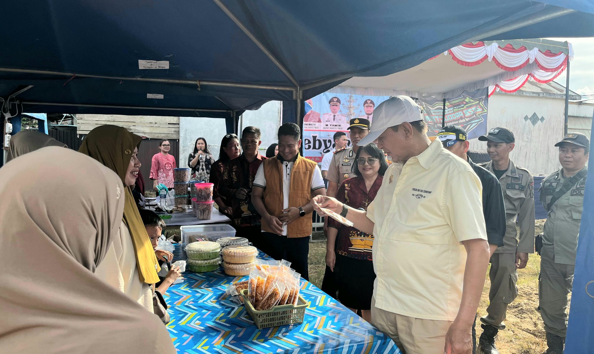TAMIANG LAYANG — Bupati Barito Timur M. Yamin secara resmi membuka Gebyar UMKM Wilayah Kecamatan Dusun Tengah dan sekitarnya Tahun 2025, Sabtu (13/12/2025). Kegiatan ini menjadi bagian dari komitmen Pemerintah Kabupaten Barito Timur dalam memperluas akses pasar serta meningkatkan daya saing produk usaha mikro, kecil, dan menengah (UMKM). Pembukaan Gebyar UMKM tersebut dihadiri Forkopimda, Asisten II Setda Bartim, Camat Dusun Tengah, Kapolsek Dusun Tengah, Danramil 1012 Buntok, serta para pelaku UMKM dan undangan lainnya.