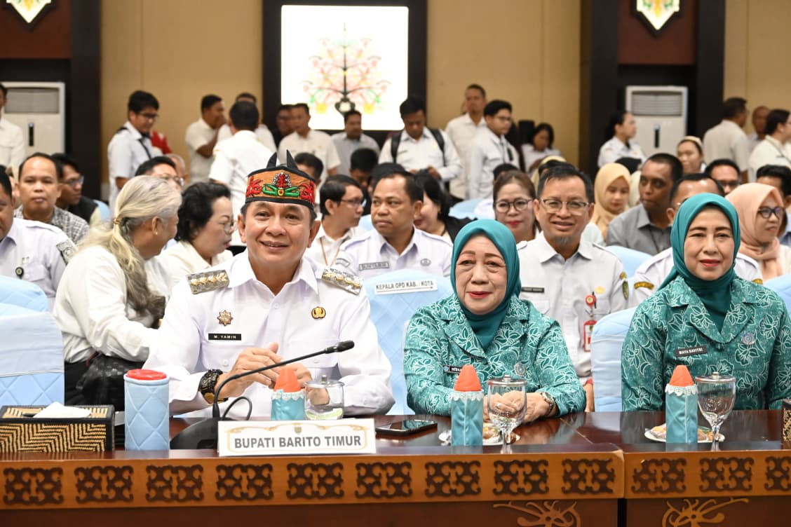 PALANGKA RAYA – Komitmen kuat Bupati Barito Timur, M. Yamin, dalam menekan angka stunting kembali mendapat pengakuan. Bersama Ketua TP PKK Barito Timur, Ny. Misnawaty M. Yamin, ia menghadiri Rapat Koordinasi Daerah (Rakorda) Program Bangga Kencana dan Percepatan Penurunan Stunting Provinsi Kalimantan Tengah Tahun 2026 di Aula Jayang Tingang, Kantor Gubernur Kalimantan Tengah, Rabu (29/4/2026).
