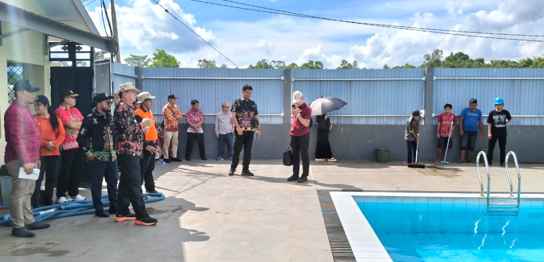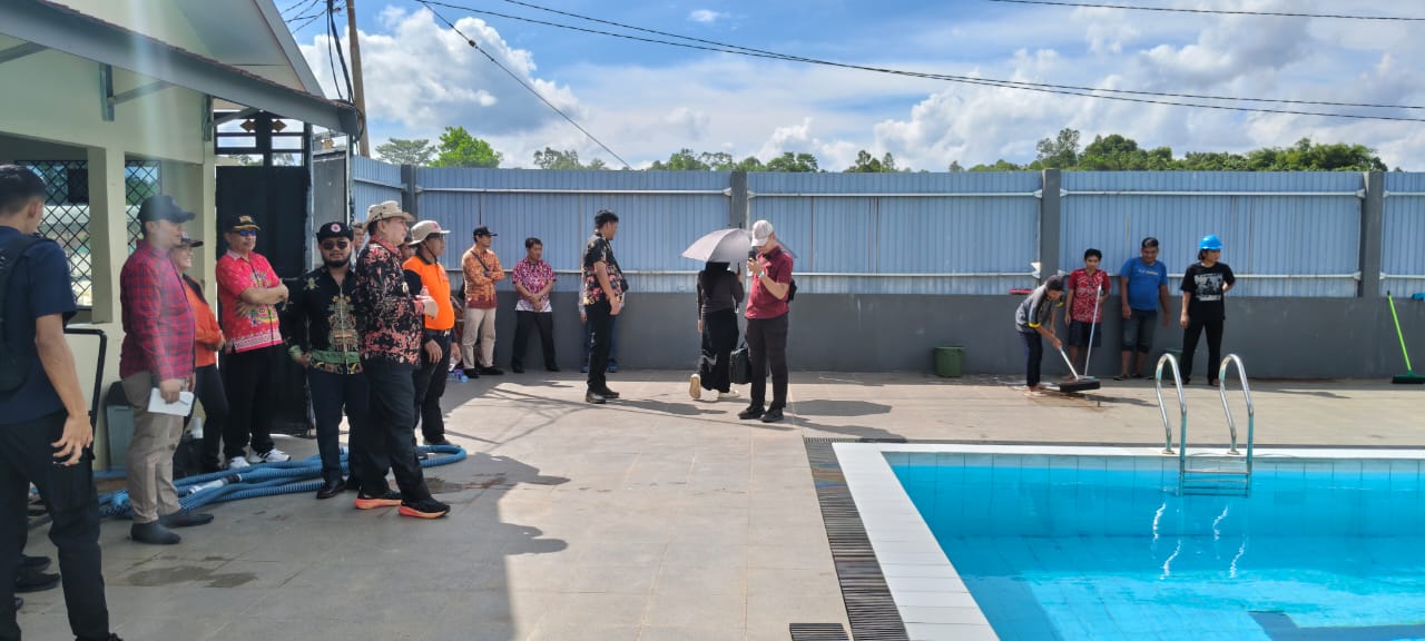 TAMIANG LAYANG — Di sela meninjau kesiapan Pengukuhan Tim Reaksi Cepat (TRC) Kabupaten Barito Timur di Lapangan Bartim Expo, Bupati Barito Timur M. Yamin bersama Wakil Bupati Adi Mula Nakalelu meninjau langsung kolam renang yang berada di kawasan tersebut, Kamis (5/2/2026).