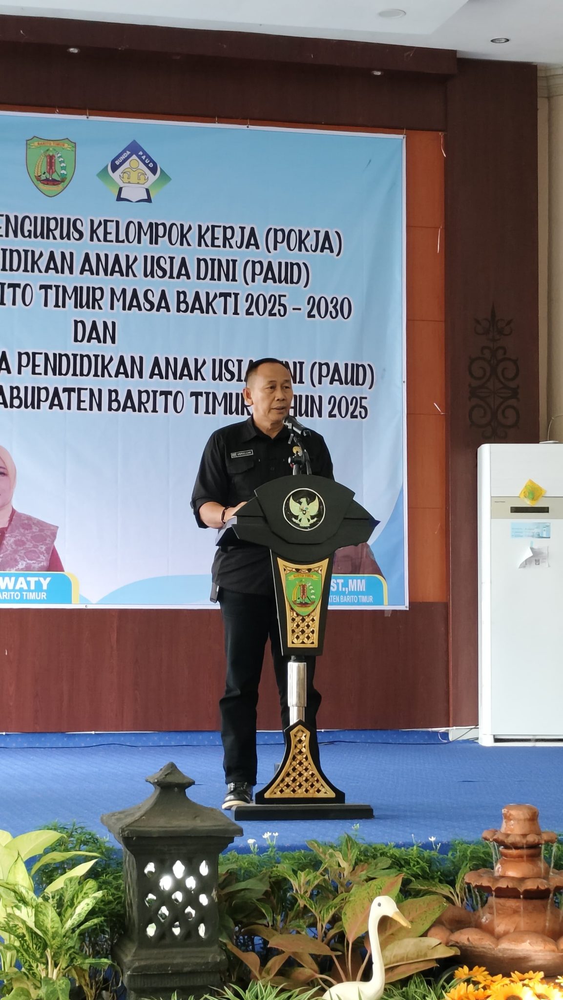 Tamiang Layang – Pemerintah Kabupaten Barito Timur terus memperkuat komitmen membangun sumber daya manusia unggul sejak usia dini. Hal itu ditegaskan dalam acara pengukuhan Kelompok Kerja (Pokja) Bunda PAUD masa bakti 2025–2030 dan Bunda PAUD kecamatan se-Barito Timur yang digelar di Aula Rumah Jabatan Bupati Barito Timur, Kamis (23/10/2025). Sambutan Bupati Barito Timur M. Yamin yang dibacakan oleh Asisten II Setda Barito Timur, Amrullah, menegaskan bahwa pendidikan anak usia dini (PAUD) merupakan pondasi penting dalam membentuk generasi penerus bangsa yang cerdas, berkarakter, dan berakhlak mulia. “Anak-anak adalah investasi terbaik bangsa. Masa keemasan mereka harus dimanfaatkan sebaik-baiknya melalui pendidikan yang berkualitas,” ujar Amrullah membacakan sambutan Bupati.
