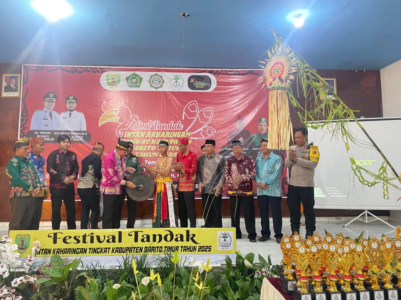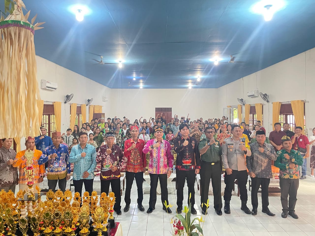 TAMIANG LAYANG — Bupati Barito Timur, M. Yamin, secara resmi membuka Festival Tandak Intan Kaharingan Tingkat Kabupaten Barito Timur Tahun 2025 yang digelar di Aula Hotel Ade Tamiang Layang, Jumat (14/11/2025). Kegiatan budaya dan keagamaan ini menjadi momentum penting dalam memperkuat pemahaman ajaran Hindu Kaharingan di daerah. Acara pembukaan dihadiri unsur Forkopimda, perwakilan Ketua Lembaga Pengembangan Tandak Pusat Palangka Raya, Ketua Majelis Daerah Agama Hindu Kaharingan Bartim, Ketua Lembaga Pengembangan Tandak Intan Kaharingan Bartim, para camat, panitia, peserta, serta tamu undangan lainnya. Dalam sambutannya, Bupati Yamin menegaskan bahwa Festival Tandak Intan Kaharingan diselenggarakan sebagai upaya menanamkan nilai-nilai ajaran Hindu Kaharingan secara berkelanjutan. Festival ini dilaksanakan secara berjenjang, mulai tingkat kecamatan, kabupaten hingga provinsi. “Festival Tandak Intan menjadi media penting untuk memperdalam pemahaman terhadap ajaran Hindu Kaharingan, terutama penghayatan terhadap kitab suci dan pelaksanaan ritual keagamaan sesuai keyakinan umat,” ujar Yamin. Mengusung tema “Kolaborasi Harmoni Mewujudkan Masyarakat Barito Timur Makin SEGAH (Sejahtera, Elegan, Gigih, Amanah, dan Harmonis)”, Bupati Yamin menekankan komitmen pemerintah daerah dalam membangun keharmonisan dan kesejahteraan masyarakat dalam bingkai Huma Betang menuju Gumi Jari Janang Kalalawah. Bupati berharap penyelenggaraan Festival Tandak Intan Kaharingan 2025 di Barito Timur dapat berjalan baik, sukses, dan mampu mengharumkan nama daerah. “Selamat mengikuti seleksi Tandak Intan Kaharingan tingkat Kabupaten Barito Timur tahun 2025,” tutupnya. (Cak)