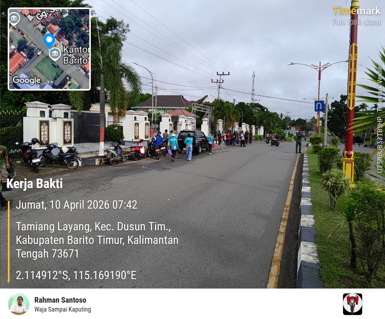 TAMIANG LAYANG — Suasana mendung menyelimuti Kota Tamiang Layang pada Jumat pagi, 9 April 2026. Udara terasa dingin dan sejuk, namun kondisi tersebut tidak menyurutkan semangat aparatur dan masyarakat untuk menjaga kebersihan lingkungan. Pemerintah Kabupaten Barito Timur melalui Sekretariat Daerah menggelar kerja bakti bersama sebagai bagian dari Gerakan Indonesia ASRI (Aman, Sehat, Resik, dan Indah).