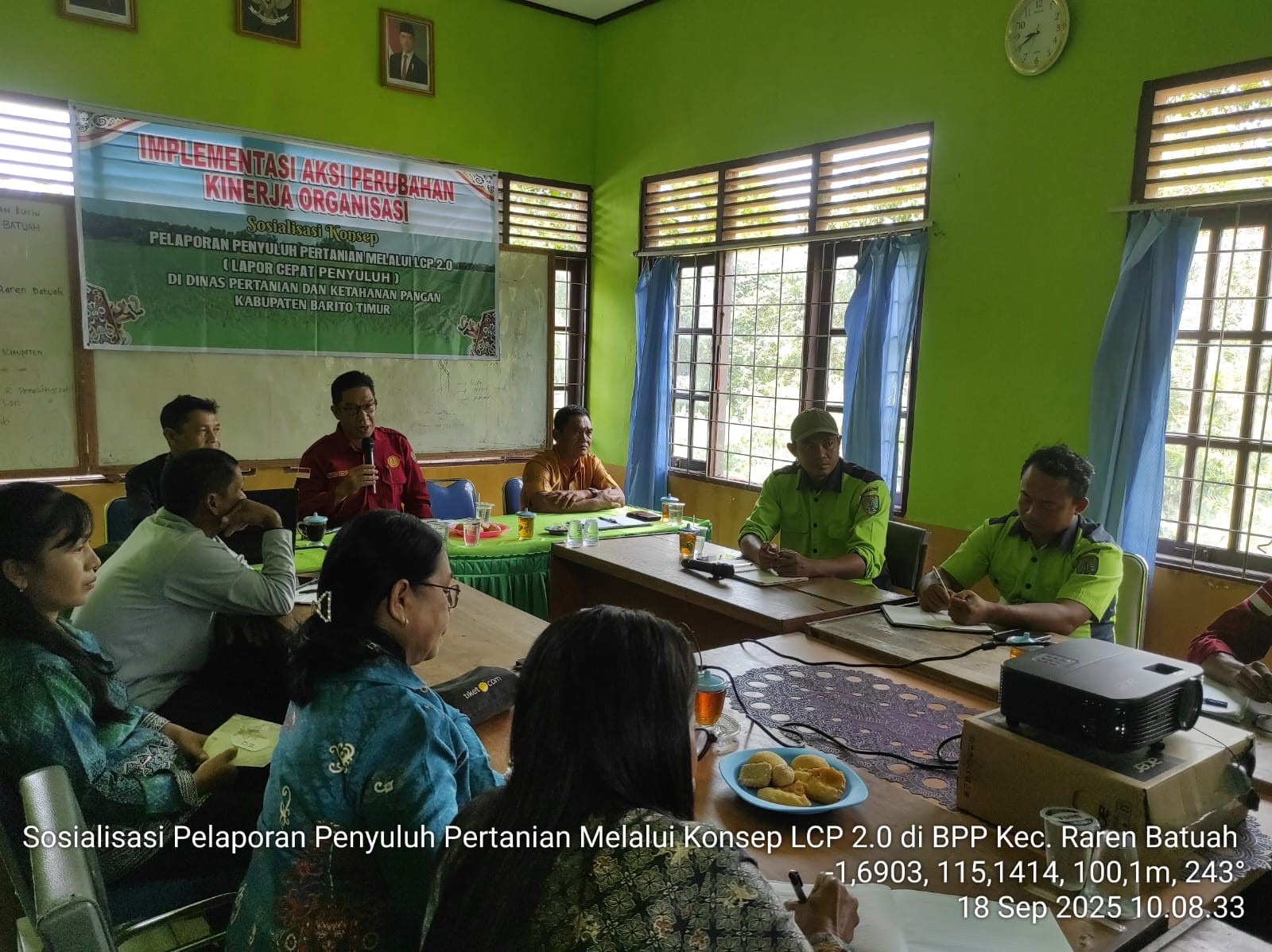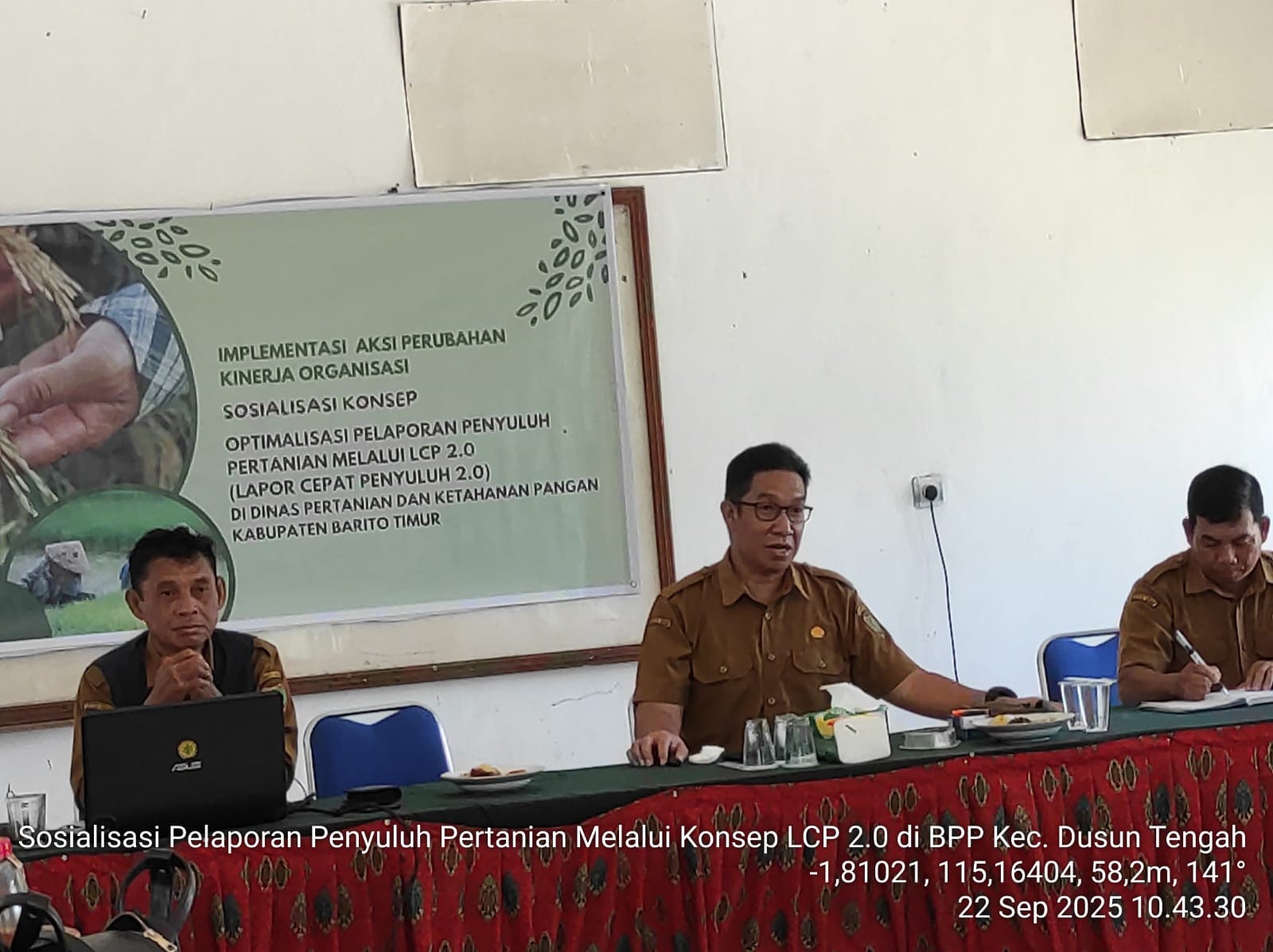 TAMIANG LAYANG – Dinas Pertanian dan Ketahanan Pangan Kabupaten (DPKP) Barito Timur melaksanakan serangkaian kegiatan sosialisasi dan rapat koordinasi (rakor) penyuluh pertanian dalam rangka implementasi aksi perubahan organisasi Kabid Penyuluhan dan Pengembangan SDM Rainhard Parlindungan, SP.,MM melalui aplikasi Lapor Cepat Penyuluh 2.0 (LCP 2.0). Inovasi ini diharapkan mampu mengoptimalkan sistem pelaporan penyuluh agar lebih efektif, akurat, dan tepat waktu.