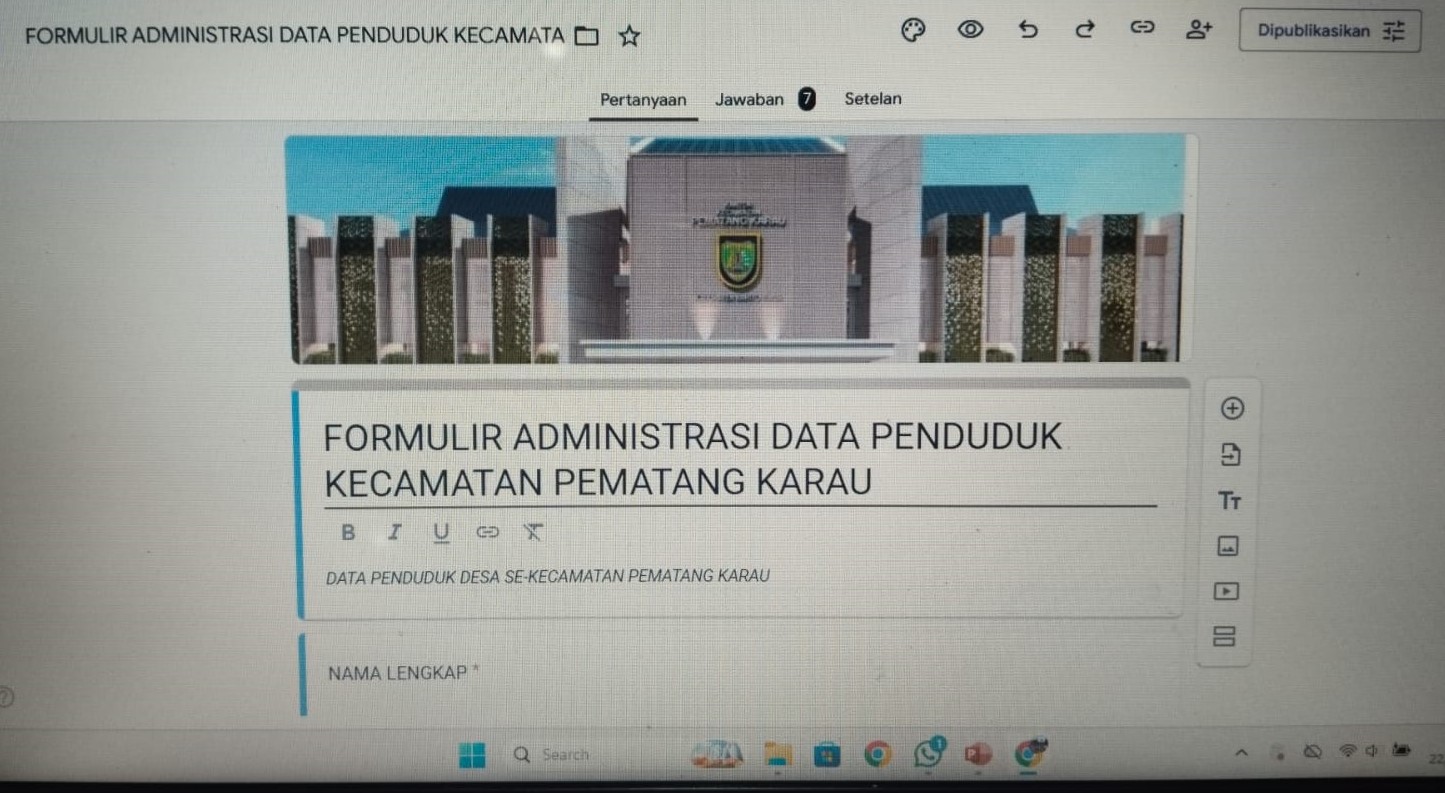 PEMATANG KARAU — Kecamatan Pematang Karau mulai menerapkan inovasi pelaporan administrasi penduduk berbasis digital melalui penggunaan Google Form. Inovasi ini disampaikan dalam kegiatan penyampaian dan penyerahan Laporan Implementasi Aksi Perubahan Pelayanan Publik yang berlangsung pada Selasa (2/12/2025) di Kantor Kecamatan Pematang Karau.