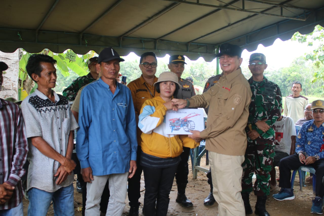 Setelah sambutan dan pembukaan, kegiatan dilanjutkan dengan penyerahan alat dan mesin pertanian (Alsintan) kepada 5 kelompok tani di Kecamatan Dusun Tengah, sebagai bentuk dukungan pemerintah dalam memperkuat sarana produksi pertanian di tingkat petani.