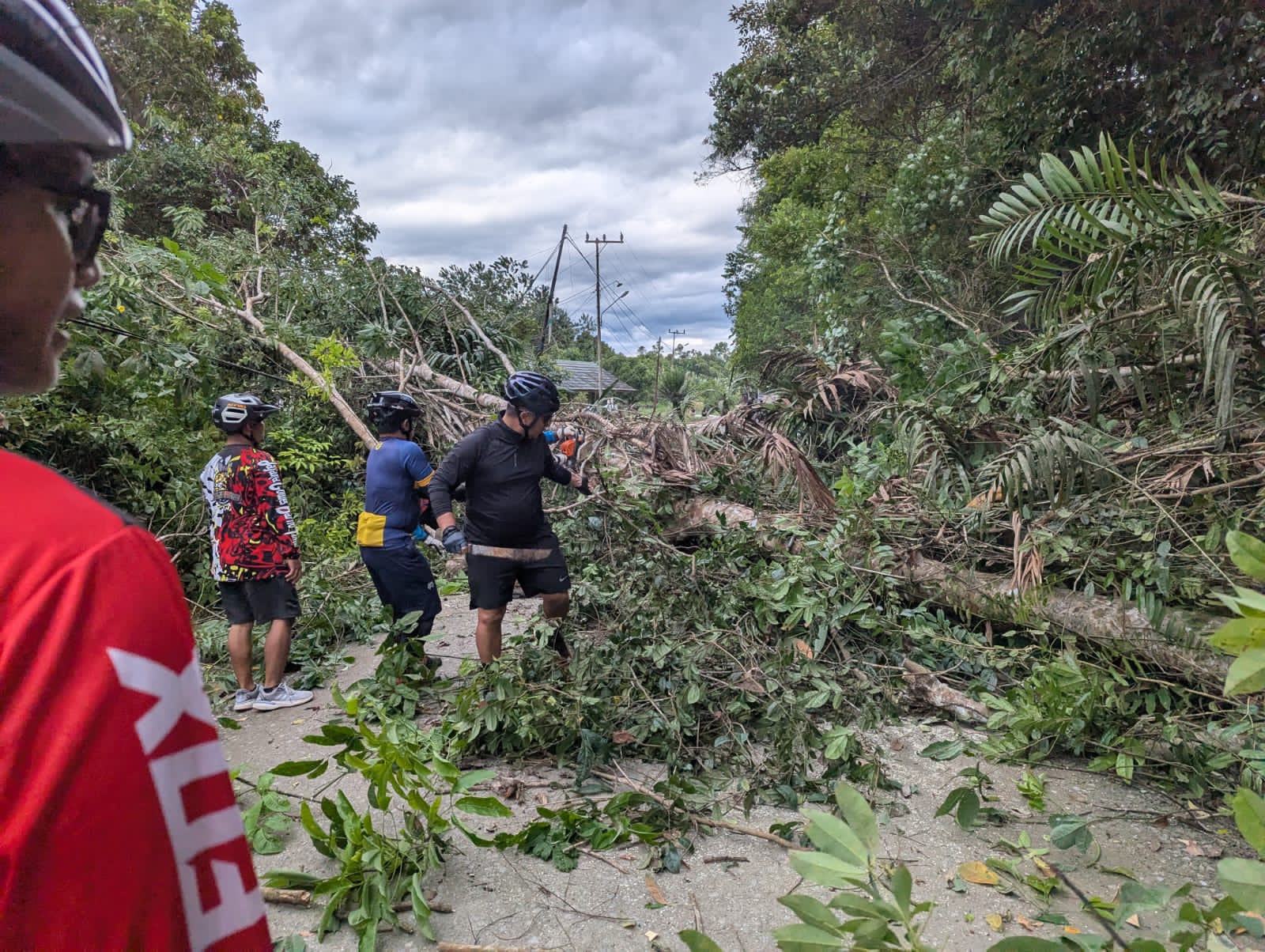 TAMIANG LAYANG — Menjelang pelaksanaan kegiatan olahraga sepeda lintas alam Funbike & Cross Country “Puang Gere 4”, panitia bersama Ketua Puang Gere 4 turut terjun langsung melakukan evakuasi pohon tumbang di Jalan Fridolin Ukur, Tamiang Layang, Minggu (2/11). Kegiatan ini dilakukan bersama petugas PLN dan warga sekitar sebagai bentuk kepedulian sekaligus persiapan menyambut gelaran akbar tersebut. Ketua Panitia Puang Gere 4 menyampaikan, aksi evakuasi ini menjadi wujud tanggung jawab sosial sekaligus semangat gotong royong yang menjadi nilai utama dalam kegiatan Puang Gere. “Kami ingin memastikan jalur kegiatan dalam kondisi aman dan nyaman bagi masyarakat serta peserta. Ini bagian dari persiapan sekaligus kontribusi kecil kami bagi lingkungan,” ujarnya. Pemerintah Kabupaten Barito Timur kembali menggelar kegiatan Funbike & Cross Country “Puang Gere 4” dalam rangka memperingati Hari Pahlawan Nasional Tahun 2025. Acara akan berlangsung pada Minggu, 9 November 2025, mulai pukul 07.00 WIB di pelataran Kantor Bupati Barito Timur, Tamiang Layang. Mengusung semangat #GowesAjaDulu, siapa tahu cocok, kegiatan ini mengajak masyarakat untuk berolahraga sambil mempererat kebersamaan dalam nuansa kepahlawanan.