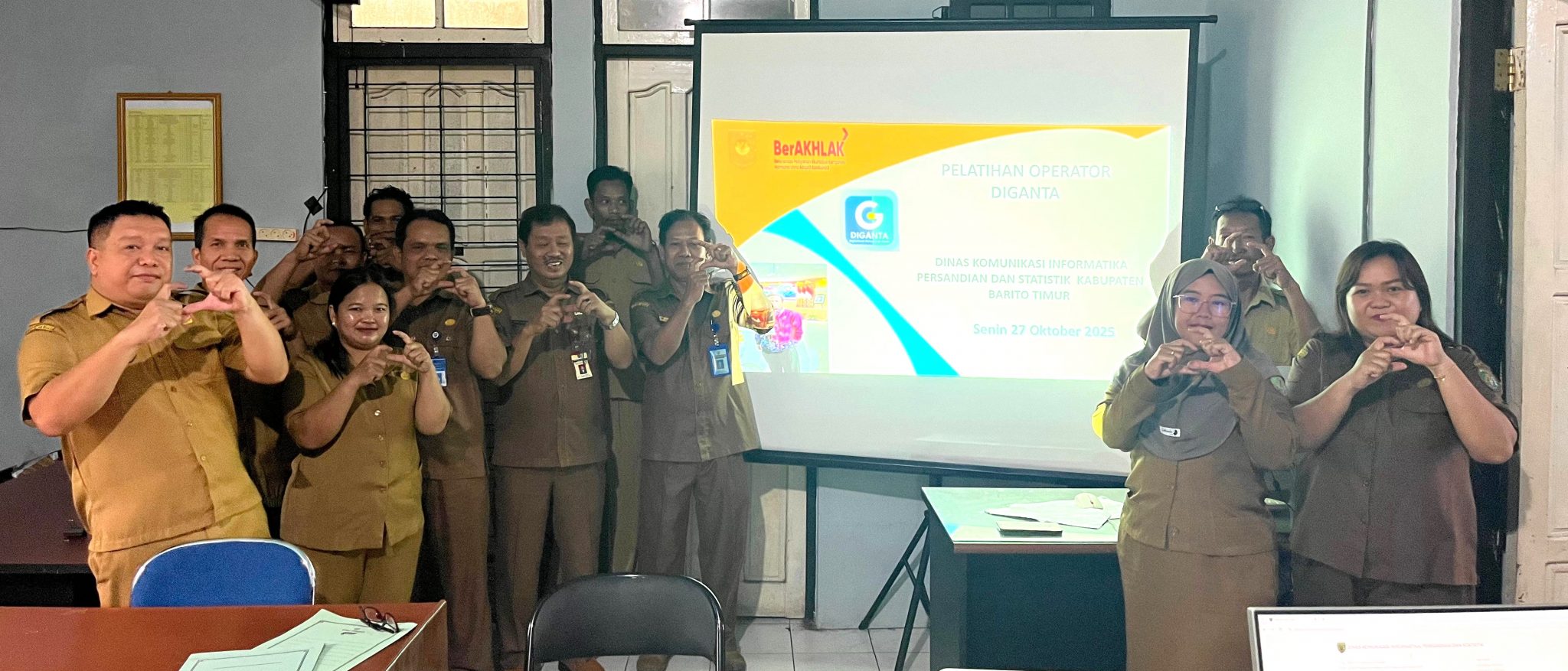TAMIANG LAYANG — Dinas Komunikasi Informatika Persandian dan Statistik (Diskominfosantik) Kabupaten Barito Timur terus mengambil langkah strategis dalam mempercepat transformasi pelayanan publik melalui penerapan inovasi digital. Salah satunya diwujudkan dengan pelaksanaan Pelatihan Operator Aplikasi DIGANTA (Digital Guest Book Application) yang digelar di Aula Diskominfosantik, Tamiang Layang.