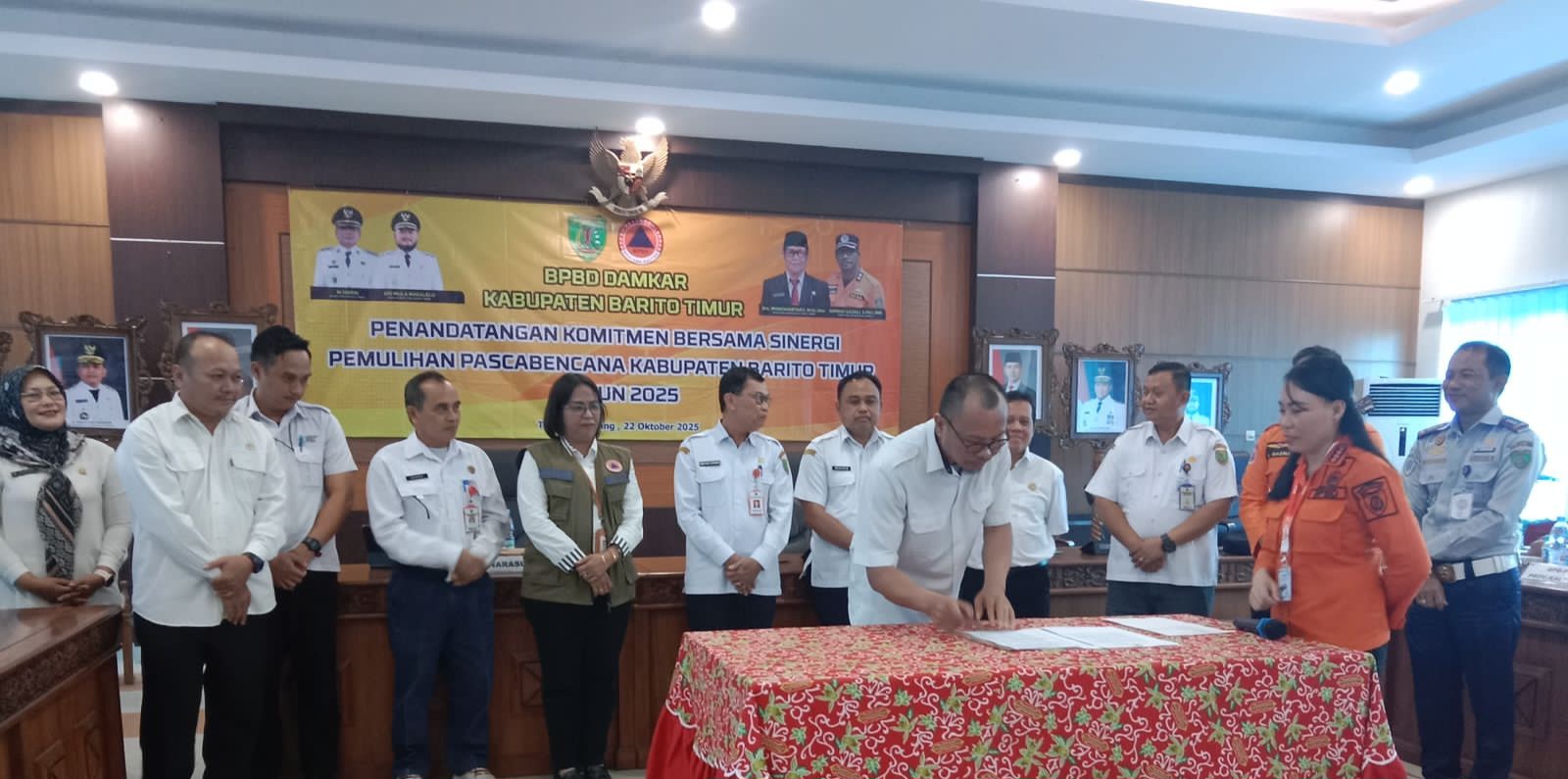Tamiang Layang — Pemerintah Kabupaten Barito Timur melalui Badan Penanggulangan Bencana Daerah dan Pemadam Kebakaran (BPBD Damkar) menggelar kegiatan pembentukan Tim Teknis Sinergi Pemulihan Pascabencana berbasis kompetensi dan kolaborasi serta Bimbingan Teknis (Bimtek) Pengkajian Kebutuhan Pascabencana atau Jitupasna. Acara yang dilaksanakan di Tamiang Layang, Rabu (22/10/2025), dibuka secara resmi oleh Asisten III Sekretariat Daerah Kabupaten Barito Timur, Edius Uhing, mewakili Bupati Barito Timur M. Yamin. Dalam sambutan Bupati yang dibacakan Edius Uhing, disampaikan apresiasi kepada BPBD Damkar Barito Timur atas penyelenggaraan kegiatan tersebut. “Sinergi pemulihan pascabencana berbasis kompetensi dan kolaborasi merupakan pendekatan multidimensi yang menggabungkan keahlian berbagai pihak untuk mempercepat proses pemulihan dan membangun ketahanan masyarakat,” ujarnya. Melalui pembentukan tim teknis ini, lanjutnya, diharapkan tercipta forum kolaborasi lintas pemangku kepentingan yang memperkuat ketahanan daerah. Forum tersebut menjadi wadah bagi penyusunan kebijakan rehabilitasi dan rekonstruksi pascabencana yang lebih terpadu serta membentuk ekosistem penanggulangan bencana yang sistematis dan berkelanjutan. Bupati juga menekankan pentingnya kegiatan Jitupasna sebagai dasar penyusunan Rencana Rehabilitasi dan Rekonstruksi Pascabencana (R3P). “Upaya pemulihan harus dilakukan dengan mengoptimalkan potensi sektor koperasi, UMKM, pariwisata, dan ketahanan pangan daerah, guna mewujudkan Barito Timur Segah — Sejahtera, Elegan, Gigih, Amanah, dan Harmonis menuju Gumi Jari Janang Kalalawah,” katanya. Sementara itu, dalam laporannya, Kepala Pelaksana BPBD Damkar Kabupaten Barito Timur, Ahmad Gazali, menyampaikan bahwa kegiatan ini menjadi langkah strategis dalam membangun sinergi antar-stakeholder penanggulangan bencana. “Kegiatan ini bertujuan agar penyelenggaraan penanggulangan bencana pascabencana dapat dilaksanakan secara cepat, tepat, terencana, terpadu, terkoordinasi, menyeluruh, dan terukur,” jelasnya. Ia menambahkan, kegiatan ini dilaksanakan berdasarkan DPA SKPD BPBD Damkar Kabupaten Barito Timur Tahun Anggaran 2025. Menurutnya, proses rehabilitasi dan rekonstruksi tidak sekadar membangun kembali sarana dan prasarana yang rusak, tetapi juga harus memperhatikan pemulihan ekonomi masyarakat dan prinsip build back better and safer. “Dengan terselenggaranya kegiatan ini, kami berharap ke depan penanggulangan bencana pascabencana di Kabupaten Barito Timur semakin baik, selaras dengan visi-misi daerah tahun 2025–2030,” ujar Ahmad Gazali menutup laporannya. Kegiatan ditandai dengan pembentukan dan penandatanganan komitmen bersama Tim Teknis Sinergi Pemulihan Pascabencana serta pelaksanaan Bimtek Jitupasna yang diikuti para pemangku kepentingan di lingkungan Pemerintah Kabupaten Barito Timur dan instansi terkait.(cak)