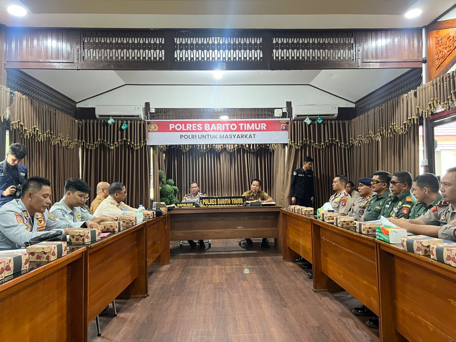 TAMIANG LAYANG — Pemerintah Kabupaten Barito Timur melalui Asisten I Setda Bartim Ari Panan P. Lelo mengikuti Rapat Koordinasi Lintas Sektoral Operasi Lilin Telabang 2025 dalam rangka pengamanan perayaan Natal 2025 dan Tahun Baru Januari 2026, di Polres Bartim, Selasa (16/12). Rakor ini menjadi langkah strategis untuk memastikan kesiapan daerah dalam menjaga keamanan, ketertiban, dan keselamatan masyarakat selama momentum libur akhir tahun.