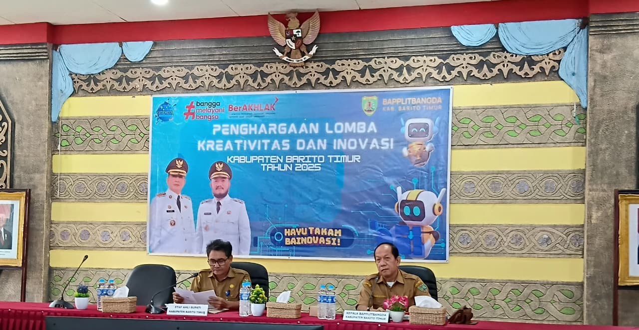 TAMIANG LAYANG — Pemerintah Kabupaten Barito Timur melalui Bapedalitbangda menggelar Penyerahan Penghargaan Lomba Kreativitas dan Inovasi (Krenova) Tahun 2025 pada Selasa (2/12/2025) di Aula Bapedalitbang. Pada kegiatan tersebut, sambutan Bupati Barito Timur M. Yamin dibacakan oleh Kepala Bapedalitbangda Barito Timur, Franz Sila Utama, yang mewakili Bupati. Melalui sambutannya, Bupati menegaskan bahwa inovasi merupakan fondasi penting dalam meningkatkan kualitas pelayanan publik dan tata kelola pemerintahan daerah yang lebih responsif.