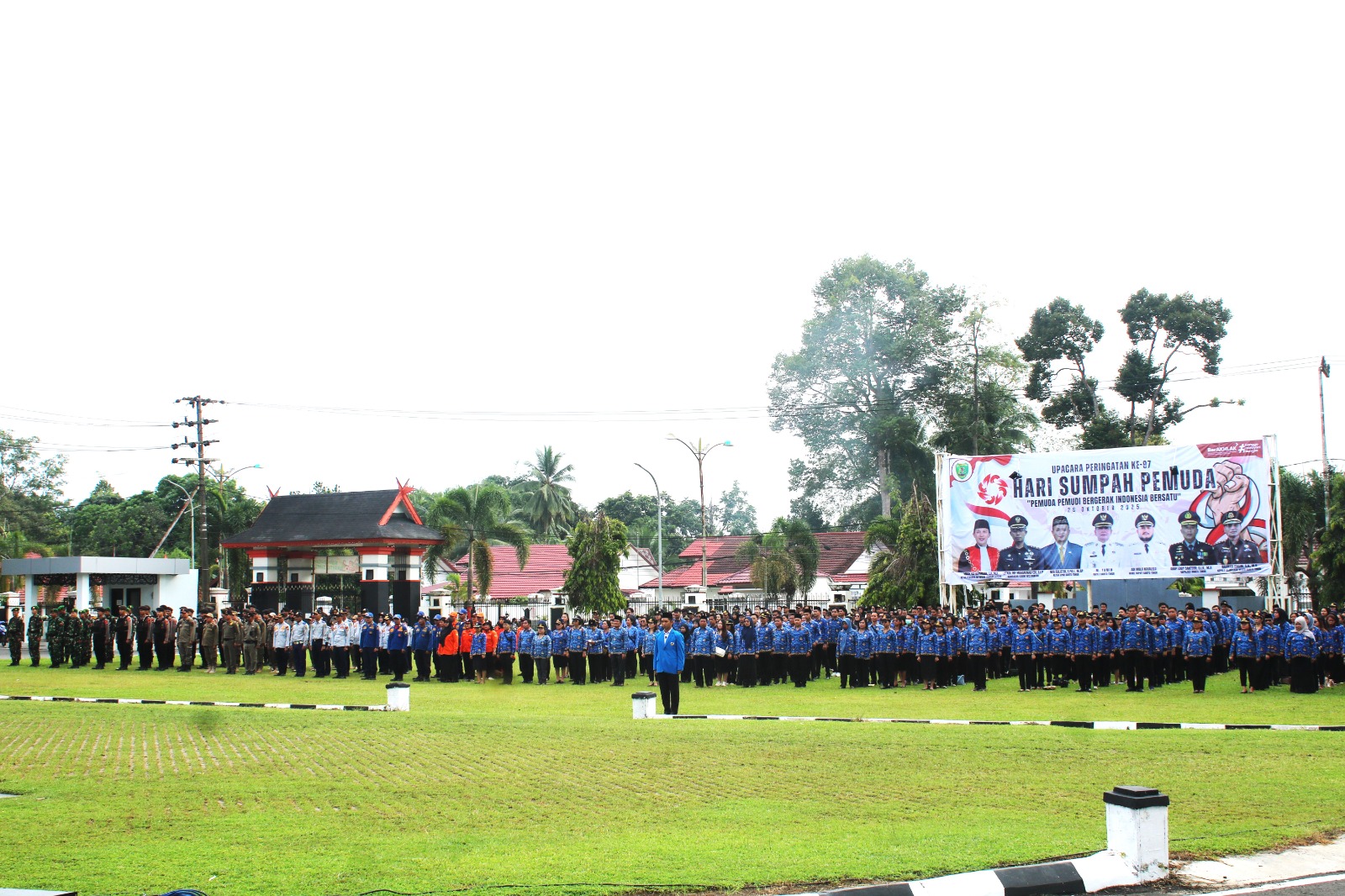 “Hari ini kita berdiri di bawah langit merah putih, langit yang dulu menaungi para pemuda 1928. Mereka tidak banyak bicara, tetapi berani bersumpah dan menepatinya dengan darah dan nyawa. Kini tugas kita berbeda. Kita tidak lagi mengangkat bambu runcing, melainkan mengangkat ilmu, kerja keras, dan kejujuran. Namun semangatnya tetap sama: Indonesia harus berdiri tegak, Indonesia tidak boleh kalah,” ujarnya.