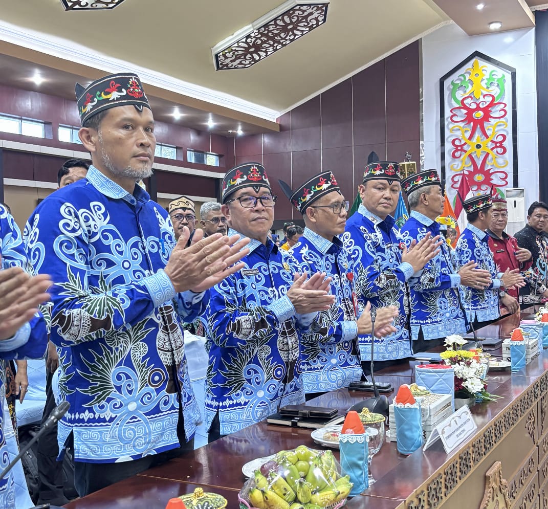 Para peserta hadir dengan mengenakan busana batik khas Kalteng lengan panjang dipadukan dengan lawung atau sumping sebagai bentuk penghormatan terhadap kearifan lokal.
