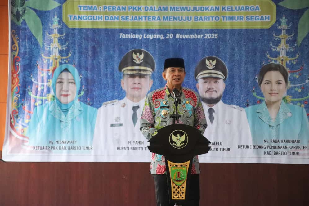 TAMIANG LAYANG — Bupati Barito Timur M.Yamin mendorong Tim Penggerak PKK untuk semakin siap menghadapi berbagai tantangan ke depan dalam membangun keluarga dan masyarakat. Pesan ini disampaikan Bupati Barito Timur, M. Yamin, saat membuka Rapat Konsultasi PKK Kabupaten Barito Timur Tahun 2025 di Aula Rumah Jabatan Bupati, Tamiang Layang, Kamis (20/11/2025).