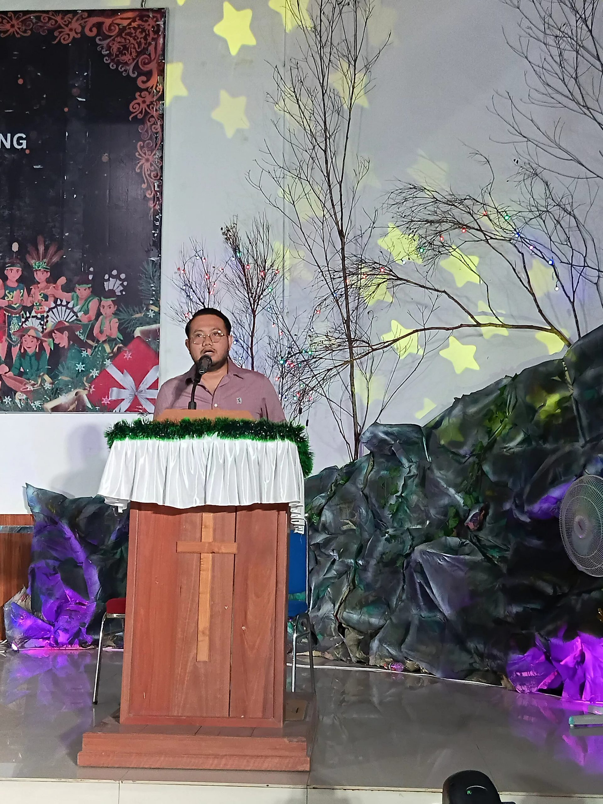 Wakil Bupati juga menekankan pentingnya menjaga Tri Kerukunan Umat Beragama, yaitu kerukunan internal umat beragama, kerukunan antarumat beragama, serta kerukunan antara umat beragama dengan pemerintah.“Melalui kegiatan seperti ini, terjalin komunikasi yang baik antara masyarakat dan pemerintah. Masyarakat dapat menyampaikan aspirasi dan harapannya, sehingga pembangunan daerah dapat berjalan dengan lancar dan berkelanjutan,” katanya.Pada kesempatan tersebut, Wakil Bupati mengajak seluruh jemaat untuk menghayati Tema Natal Nasional 2025, “Allah Hadir untuk Menyelamatkan Keluarga” (Matius 1:21–24), dengan subtema kegiatan “Jadikan Momen Natal sebagai Kesempatan untuk Memperkuat Komitmen Jemaat sebagai Satu Keluarga Allah.”Ia berharap semangat Natal mampu menumbuhkan sikap saling mengasihi, menjadi pembawa damai, serta memperkuat keharmonisan di tengah kehidupan bermasyarakat yang majemuk.