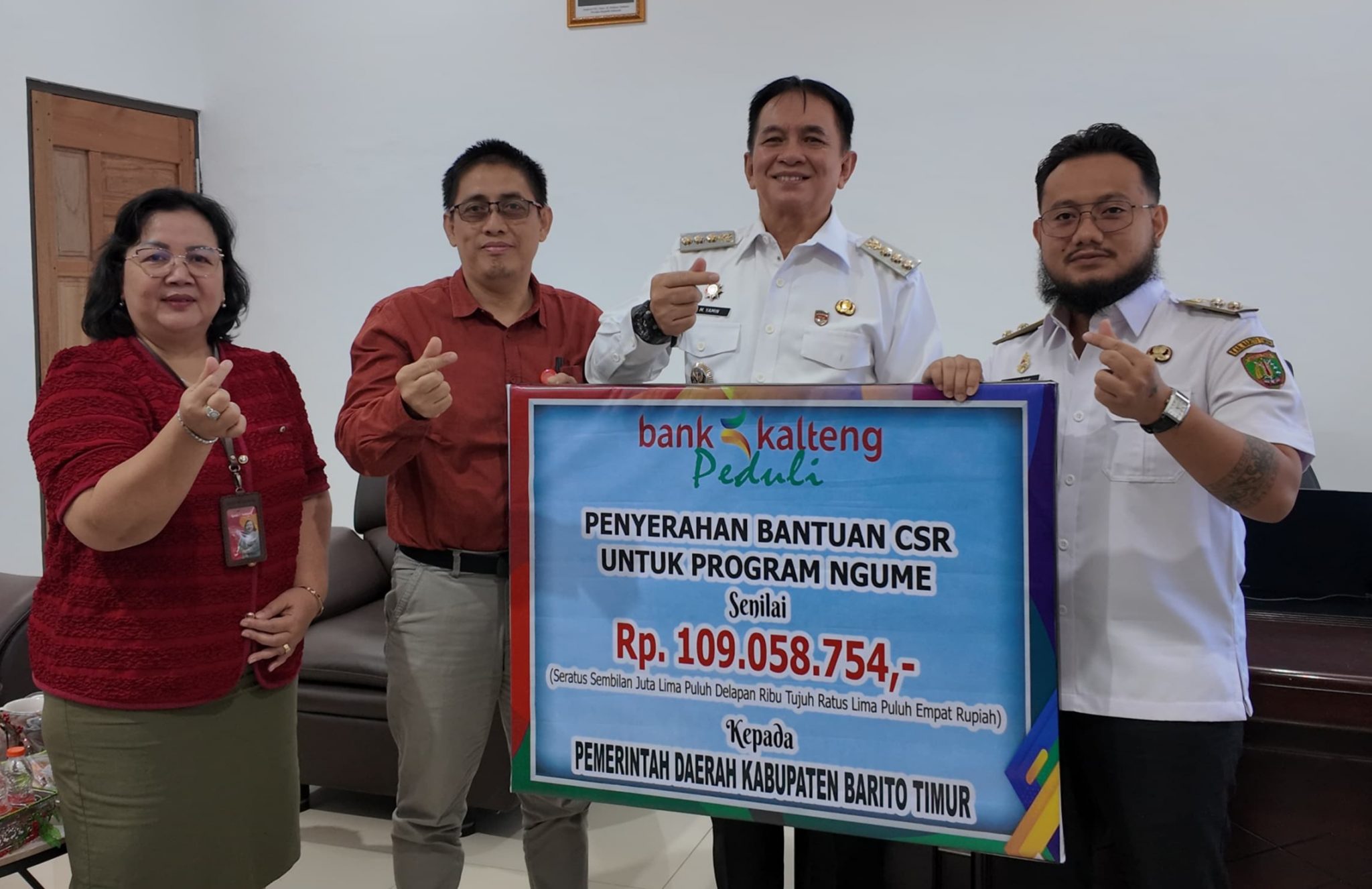 Tamiang Layang – PT Bank Kalteng Cabang Tamiang Layang menyalurkan bantuan Corporate Social Responsibility (CSR) tahun 2025 senilai Rp109.058.754,- kepada Pemerintah Kabupaten Barito Timur. Dana tersebut diperuntukkan bagi subsidi bunga program Kredit Ngume, yang menjadi salah satu upaya meningkatkan ekonomi kerakyatan di daerah. Penyerahan dilakukan secara simbolis di Kantor Bank Kalteng Cabang Tamiang Layang, Selasa (15/10/2025), dan dihadiri langsung oleh Pemimpin Cabang Bank Kalteng Tamiang Layang, Ernan Kurniato, didampingi Wakil Pemimpin Cabang, Cori Anggriany. Sementara dari pihak pemerintah daerah hadir Bupati M.Yamin dan Wakil Bupati Adi Mula Nakalelu, yang sebelumnya juga melakukan pertemuan dengan pihak Bank Kalteng dalam rangkaian kegiatan seremonial penyerahan CSR tersebut. Pemimpin Cabang Bank Kalteng Tamiang Layang, Ernan Kurniato kepada wartawan menjelaskan bahwa dana CSR ini merupakan bentuk komitmen Bank Kalteng dalam mendukung pertumbuhan ekonomi masyarakat, khususnya melalui pembiayaan tanpa bunga bagi pelaku usaha kecil di Barito Timur. “CSR ini salah satu bentuk komitmen kami dalam mendukung ekonomi kerakyatan. Dana ini digunakan untuk subsidi bunga kredit Ngume, sehingga masyarakat bisa menikmati kredit tanpa bunga,” ujar Ernan. Ia menambahkan, hingga saat ini sudah cukup banyak masyarakat Barito Timur yang mengajukan dan menikmati fasilitas Kredit Ngume, baik di sektor perdagangan, pertanian, maupun perkebunan. “Harapan kami, kredit ini semakin dikenal luas dan dimanfaatkan masyarakat Barito Timur untuk mengembangkan usaha, meningkatkan ekonomi keluarga, dan mendorong pertumbuhan ekonomi daerah,” lanjutnya. Bank Kalteng juga mengimbau masyarakat yang berminat mengajukan Kredit Ngume agar terlebih dahulu berkoordinasi dengan organisasi perangkat daerah (OPD) terkait. “Kalau usahanya di bidang perdagangan, bisa ke Dinas Perdagangan. Kalau pertanian atau perkebunan, silakan ke Dinas Pertanian. Setelah verifikasi oleh OPD, berkas akan diteruskan ke Bank Kalteng untuk proses lebih lanjut hingga pencairan,” jelas Ernan. Program Kredit Ngume sendiri merupakan bentuk sinergi antara Pemerintah Kabupaten Barito Timur dan Bank Kalteng untuk memberikan akses permodalan tanpa bunga kepada masyarakat, terutama pelaku UMKM dan sektor produktif.(cak/ist).