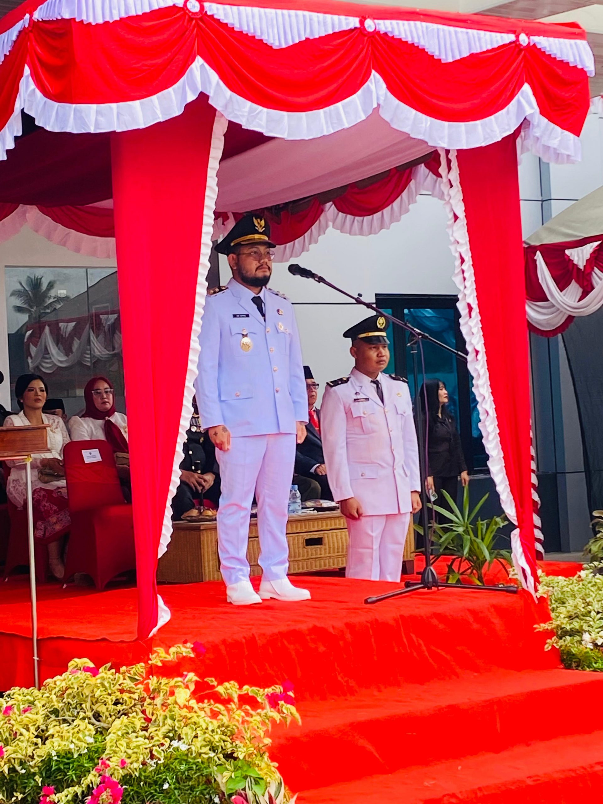TAMIANG LAYANG, 17 Agustus 2025 — Upacara penurunan bendera merah putih dalam rangka peringatan Hari Ulang Tahun ke-80 Proklamasi Kemerdekaan Republik Indonesia berlangsung khidmat di Halaman Kantor Bupati Barito Timur, Minggu (17/8). Wakil Bupati Barito Timur, Adi Mula Nakalelu, bertindak sebagai inspektur upacara.