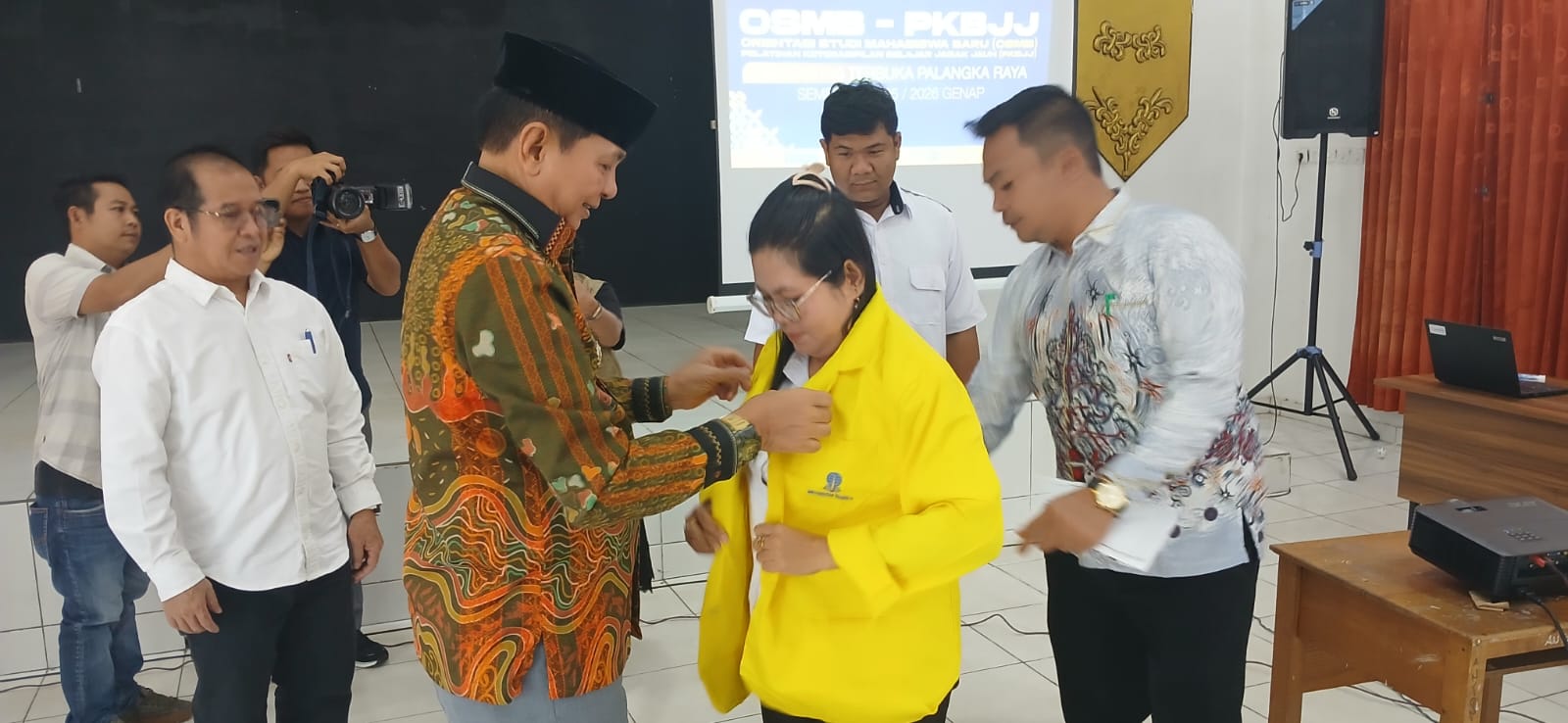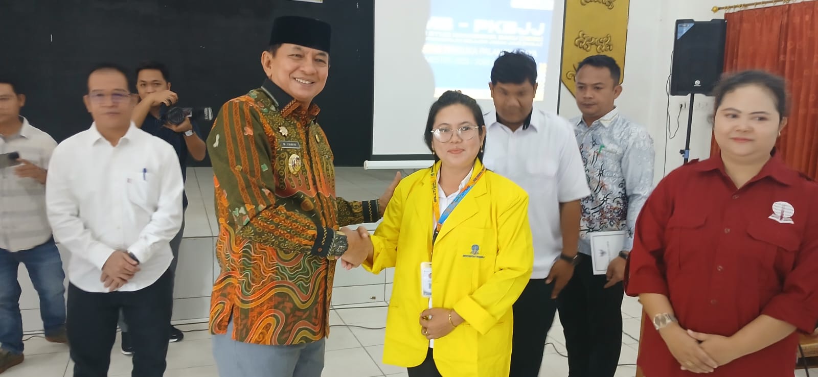 TAMIANG LAYANG – Bupati Barito Timur, M. Yamin, menghadiri pembukaan Orientasi Studi Mahasiswa Baru (OSMB) dan Pelatihan Keterampilan Belajar Jarak Jauh (PKBJJ) Semester Genap Tahun Akademik 2025–2026 yang diselenggarakan oleh Universitas Terbuka Palangka Raya.Kegiatan yang digelar di Aula Dinas Pendidikan Kabupaten Barito Timur tersebut turut dihadiri Sekretaris Daerah Barito Timur Misnohartaku, Pelaksana Tugas Kepala Dinas Pendidikan Bunyamin, serta para mahasiswa baru, Sabtu (28/2/2026).Bupati M. Yamin menyampaikan apresiasi atas peran Universitas Terbuka yang memberikan akses pendidikan tinggi bagi masyarakat, khususnya di daerah, melalui sistem pembelajaran jarak jauh yang fleksibel.Menurutnya, pendidikan tinggi memiliki peran penting dalam meningkatkan kualitas sumber daya manusia dan mendukung pembangunan daerah di berbagai sektor.Selain itu, Bupati juga menyampaikan rencana Pemerintah Kabupaten Barito Timur untuk mendorong para kepala desa agar memiliki pendidikan tinggi melalui program kerja sama dengan Universitas Terbuka.“Kami merencanakan kerja sama dengan Universitas Terbuka agar ke depan setiap kepala desa di Barito Timur memiliki pendidikan tinggi. Ini penting untuk meningkatkan kapasitas dan kualitas pelayanan kepada masyarakat di desa,” ujarnya.